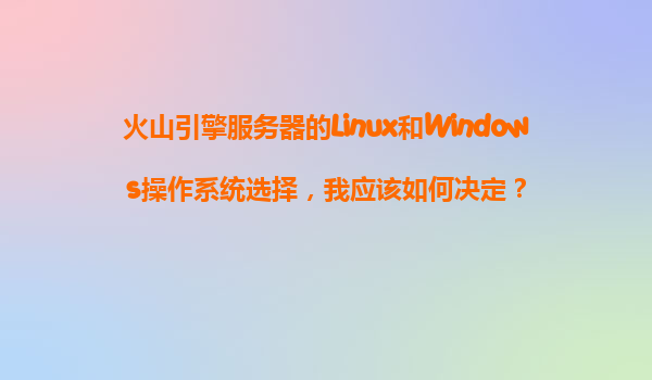 2025-11-05火山引擎服务器的Linux与Windows操作系统选择指南 引言 在数字化转型的浪潮中,选择合适的服务器操作系统是企业IT基础设施规划的重要环节。火山引擎作为字节跳动旗下的云服务平台,...