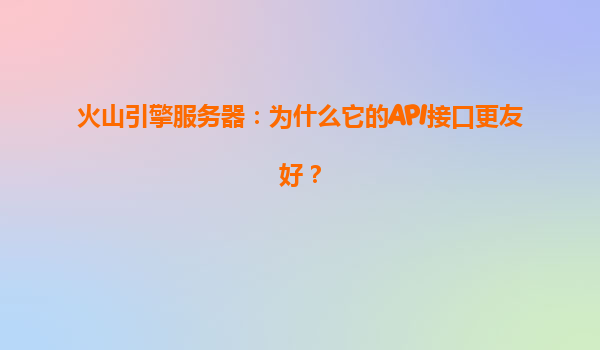 2025-04-06火山引擎服务器:为什么它的API接口更友好? 在云计算和数字化转型的浪潮中,API接口作为系统间通信的核心工具,其设计质量直接影响开发效率与业务扩展能力。火山引擎服务器凭借...