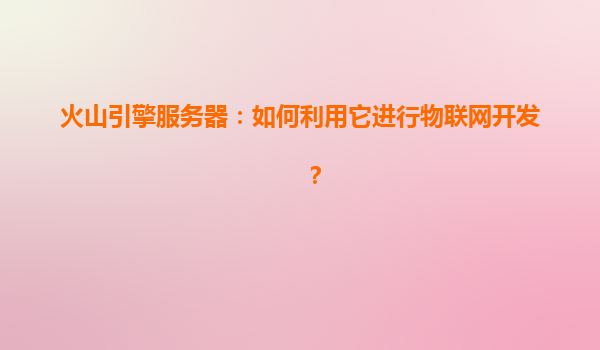 2025-04-05火山引擎服务器:如何利用它进行物联网开发? 一、火山引擎的核心能力与物联网适配性 1.1全栈式云计算基础设施 火山引擎提供弹性计算集群与全球节点布局,支持百万级设备并发接入。其分布式架构满足物...