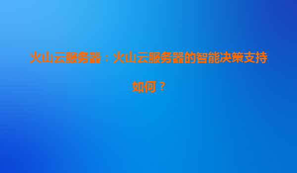 2025-04-02火山云服务器智能决策支持的核心价值 在数字化转型加速的今天,火山云服务器通过自主研发的智能决策支持系统,为企业提供从数据采集到业务优化的全链路解决方案。其核心优势在于将大数据处理、机器学习算法与云...
