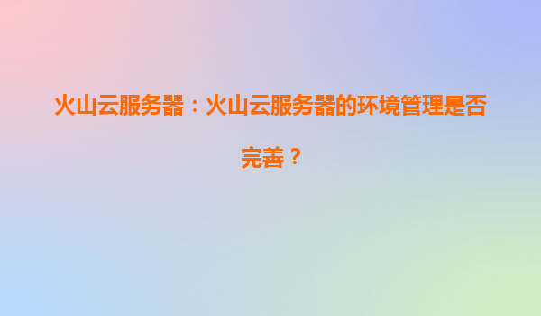 2025-04-02火山云服务器环境管理的完善性解析 弹性伸缩能力保障业务稳定性 火山云服务器通过智能弹性伸缩功能,可根据实时业务负载动态调整计算资源。其独有的预测算法能提前预判流量高峰,实现秒级扩缩容操...