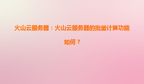 2025-04-02火山云服务器:批量计算功能的深度解析与生态优势 一、火山引擎批量计算功能的核心优势 火山云服务器的批量计算服务(BatchCompute)是为大规模数据处理、科学计算和高性能任务设计的核心功能,...
