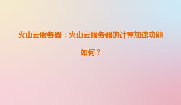 火山云服务器:计算加速功能的核心优势与应用价值 一、火山云服务器的计算加速能力解析 火山云服务器(VolcanooCloud)作为火山引擎旗下的核心云计算服务,其计算加速功能通过软硬件协同设计实现了技...