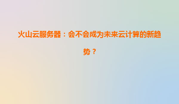 2025-03-31火山云服务器:云计算领域的新势力崛起 一、云计算市场的新变革契机 随着数字化转型加速,全球云计算市场规模持续扩大,企业需求正从基础资源供给转向智能化、场景化服务。火山引擎依托字节跳动十年技...