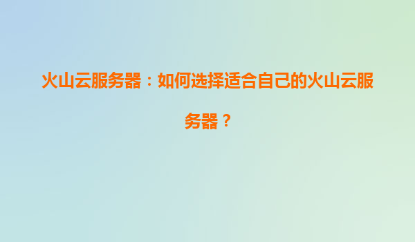 2025-03-31如何选择适合自己的火山云服务器? 一、为什么选择火山云服务器? 火山引擎(VolEngine)作为字节跳动旗下的云计算品牌,凭借其强大的技术积累和全球化基础设施布局,为企业与开...