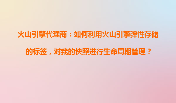 火山引擎代理商:如何利用火山引擎弹性存储的标签,对我的快照进行生命周期管理? 一、火山引擎弹性存储的核心优势 作为字节跳动旗下的云计算服务品牌,火山引擎弹性存储在快照管理方面具有以下核心优势: 智能...