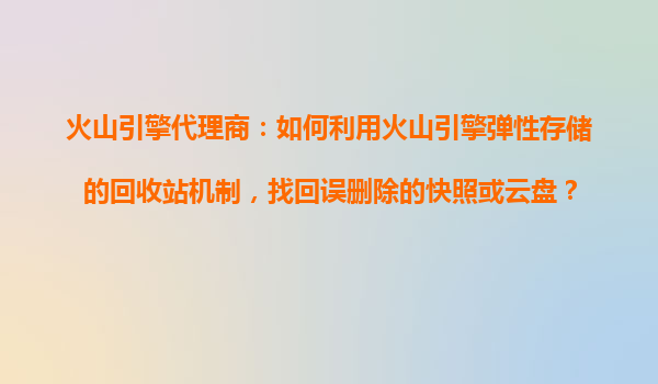 2025-11-01火山引擎代理商:如何利用火山引擎弹性存储的回收站机制找回误删除的快照或云盘? 引言 在日常的云存储操作中,误删数据是一个常见但令人头疼的问题。无论是快照还是云盘,一旦被误删除,可能...
