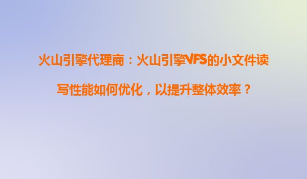 2025-11-01火山引擎代理商:火山引擎VFS的小文件读写性能优化策略 一、火山引擎VFS介绍 作为字节跳动旗下的云服务平台,火山引擎提供了一系列高效的企业级解决方案,其中包括火山引擎虚拟文件系统(VFS)。VFS是云上文...