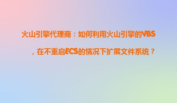 2025-10-31火山引擎代理商指南:如何利用VBS在不重启ECS的情况下扩展文件系统 引言 在云计算时代,企业需要灵活扩展存储资源以应对业务增长。火山引擎作为字节跳动旗下的云服务平台,其块存储服务(VBS)为弹性计算服务(ECS...