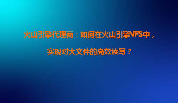 2025-10-31火山引擎代理商:如何在火山引擎VFS中实现对大文件的高效读写? 一、火山引擎VFS的核心优势 火山引擎(VolcanoEngine)作为字节跳动旗下的云计算服务平台,其...