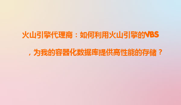 2025-10-31火山引擎代理商指南:如何利用VBS为容器化数据库提供高性能存储 一、容器化数据库的存储挑战 随着云原生技术的普及,容器化数据库已成为现代应用架构的核心组件。然而传统存储方案在动态扩展、性能稳定性等方面往...