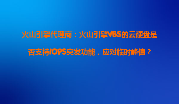 2025-10-31火山引擎代理商解析:火山引擎VBS云硬盘的IOPS突发功能如何应对临时峰值? 一、火山引擎VBS云硬盘的核心特性 火山引擎作为字节跳动旗下的云计算品牌,其云硬盘服务(VolcanoBlockS...
