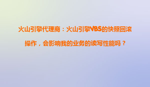 2025-10-31火山引擎VBS快照回滚操作对业务读写性能的影响解析 在日常业务运维中,数据安全与业务连续性是企业最关心的核心问题之一。火山引擎提供的云硬盘服务(VBS)通过快照功能为用户提供了高效的数据保护方案,而...
