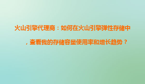 2025-10-30火山引擎代理商指南:如何高效监控弹性存储容量与增长趋势 一、火山引擎弹性存储的核心价值 火山引擎作为字节跳动旗下的云计算服务平台,其弹性存储服务(veStorage)凭借高可靠、低延迟...