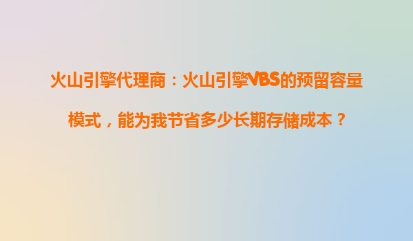 2025-10-30火山引擎代理商:火山引擎VBS预留容量模式如何为您节省长期存储成本? 一、云计算时代下的存储成本挑战 随着企业数字化进程加速,数据量呈现爆炸式增长,存储成本已成为企业IT支出的重要组成部分。传统自建存储方...