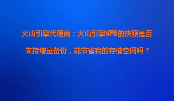 2025-10-30火山引擎代理商为您解读:火山引擎VFS快照是否支持增量备份?如何节省存储空间? 一、火山引擎VFS快照技术核心解析 作为字节跳动旗下的云计算服务品牌,火山引擎的虚拟文件系统(VFS)采用创新的"数据块级快照"...