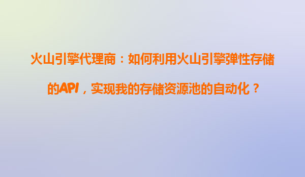 2025-10-30火山引擎代理商:如何利用火山引擎弹性存储的API,实现存储资源池的自动化 一、火山引擎弹性存储的核心优势 火山引擎作为字节跳动旗下的云服务平台,其弹性存储服务(VolcanoEngineElasticStorage)凭借以下优...