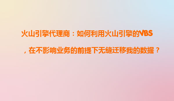 2025-10-30火山引擎代理商:如何利用火山引擎的VBS实现业务无缝数据迁移 1.为什么选择火山引擎VBS进行数据迁移? 数据迁移是企业上云或优化IT架构的关键环节,而火山引擎的云存储服务(VolcanoBlockS...