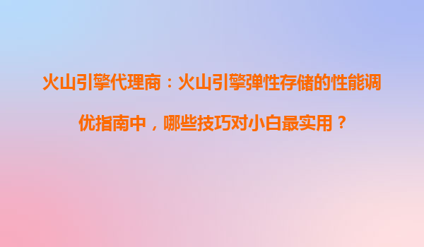 2025-10-30火山引擎代理商指南:火山引擎弹性存储的性能调优实用技巧 一、火山引擎弹性存储的核心优势 火山引擎弹性存储(VeES)作为字节跳动旗下的云存储服务,凭借以下优势成为企业数据管理的理想选择: ...