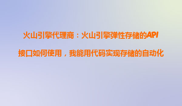 2025-10-29火山引擎代理商指南:火山引擎弹性存储的API接口使用与自动化管理 一、火山引擎弹性存储的核心优势 火山引擎是字节跳动旗下的云服务平台,其弹性存储服务(Volc...