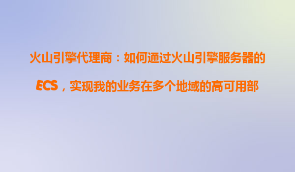 火山引擎代理商:如何通过火山引擎服务器的ECS,实现业务在多个地域的高可用部署 一、什么是火山引擎ECS及其高可用部署的核心价值 火山引擎的弹性计算服务(ElasticComputeService,ECS)是一种...