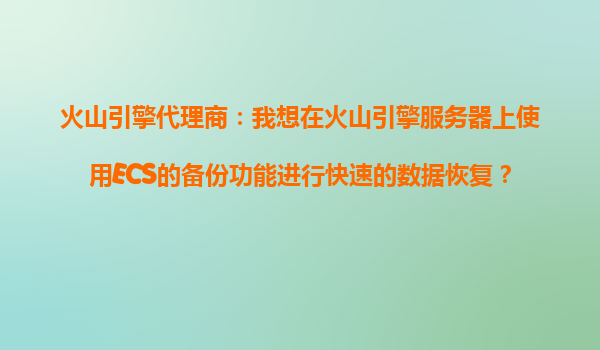 2025-10-27火山引擎代理商:如何利用ECS备份功能实现快速数据恢复? 一、引言:数据备份的重要性 在数字化时代,数据是企业最重要的资产之一。无论是业务运营、客户信息还...