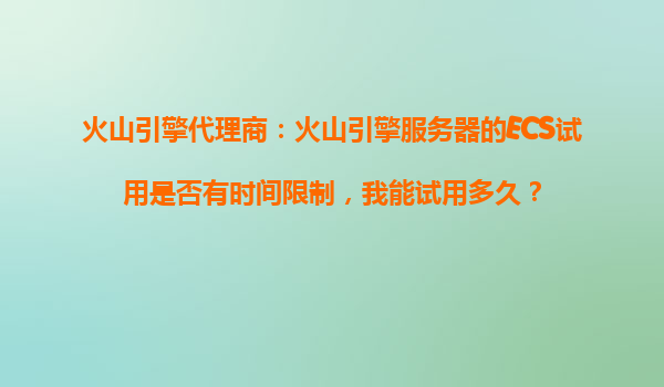 2025-10-27火山引擎代理商:火山引擎服务器的ECS试用是否有时间限制,我能试用多久? 火山引擎作为字节跳动旗下的云计算品牌,近年来在中国云服务市场发展迅猛,凭借先进的技术架构和丰富的产品矩阵,为企业和开发者提供稳...
