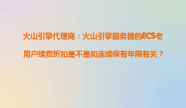 2025-10-25火山引擎代理商:火山引擎服务器ECS老用户续费折扣与连续保有年限的关系 一、火山引擎及其代理商的核心优势 火山引擎作为字节跳动旗下的云计算服务品牌,凭借全球领先的推荐算法、大数据处理能力和音视频...