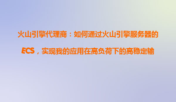 2025-10-25火山引擎代理商:如何通过火山引擎服务器的ECS,实现应用在高负荷下的高稳定输出? 引言 在当今数字化时代,企业应用的高负载处理能力与稳定性直接关系到用户体...