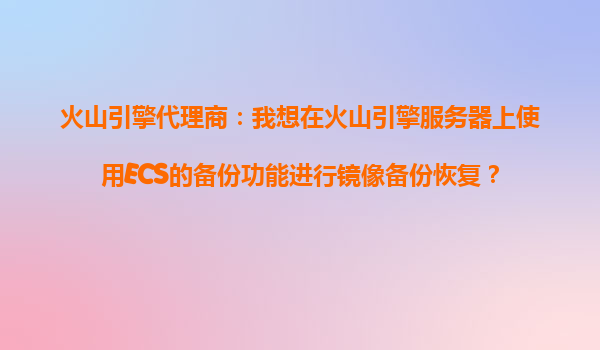 2025-10-25火山引擎ECS备份功能:打造企业级数据安全护盾 在数字化转型浪潮中,企业数据资产的安全性与可用性已成为核心诉求。作为火山引擎代理商,我们深刻理解客户对云服务器数据保护的迫切需求。火山引擎ECS(弹性计算服务...