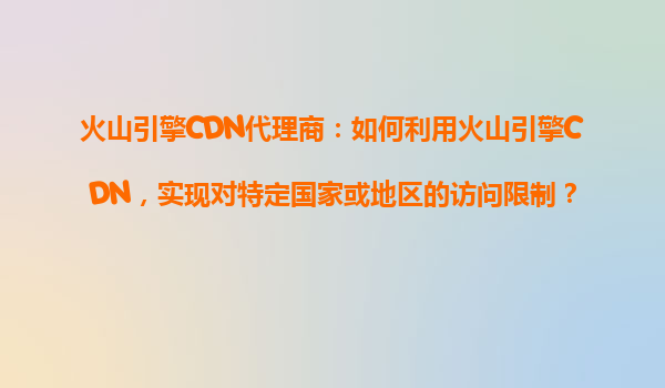 2025-10-20火山引擎CDN代理商:如何利用火山引擎CDN,实现对特定国家或地区的访问限制? 一、火山引擎CDN的核心能力 火山引擎CDN作为字节跳动旗下的全球内容分发网络服务,具有以下核心优势: 全球节点覆盖:在50+国家和...