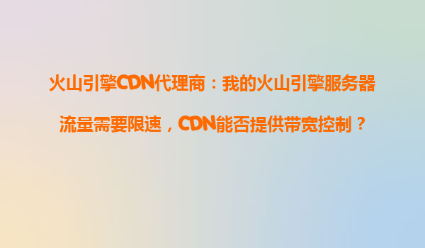 2025-10-20火山引擎CDN代理商的流量限速需求解决方案 对于火山引擎代理商的服务器流量管理需求,火山引擎CDN不仅能提供高效的带宽控制能力,还能帮助用户优化成本、提升服务质量。以下是其核心功能与优势详解。 ...