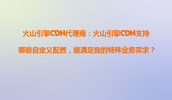 2025-10-18火山引擎CDN代理商:火山引擎CDN的自定义配置与业务需求满足方案 一、火山引擎CDN的核心优势 火山引擎CDN作为字节跳动旗下的全球内容分发网络服务,凭借其强大的基础设施和技术能力,为企业和开发...