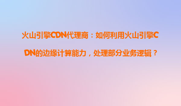 2025-10-18火山引擎CDN代理商:如何利用火山引擎CDN的边缘计算能力,处理部分业务逻辑? 随着数字化转型的加速,企业对内容分发网络(CDN)的需求不再局限于简单的静态资源加速,而是希望通过边缘计算能力处理部分业务逻...