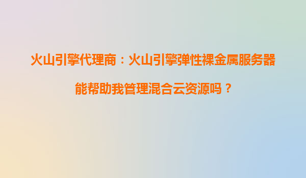 2025-10-14火山引擎代理商:火山引擎弹性裸金属服务器如何助力企业高效管理混合云资源 一、混合云管理的挑战与火山引擎的解决方案 随着企业数字化转型的深入,混合云架构已成为主流选择。然而,混合云环境的管理却面...