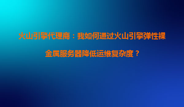 2025-10-11火山引擎代理商:我如何通过火山引擎弹性裸金属服务器降低运维复杂度? 引言 在数字化转型的浪潮中,企业对于高性能计算的需求日益增长,而传统的物理服务器和虚拟化方案往往难以兼顾性能与灵活性。作为火...
