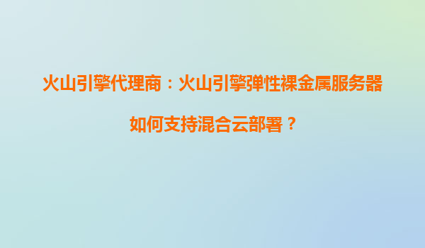 2025-10-11火山引擎代理商:我能通过火山引擎弹性裸金属服务器快速扩展计算资源吗? 一、火山引擎弹性裸金属服务器的核心优势 火山引擎作为字节跳动旗下的云服务平台,其弹性裸金属服务器(EBM)融合了物理机的性能与...