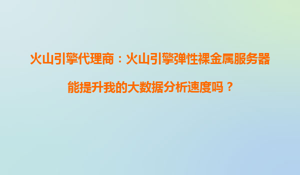 2025-10-10火山引擎代理商:火山引擎弹性裸金属服务器能提升我的大数据分析速度吗? 一、火山引擎弹性裸金属服务器的核心优势 火山引擎作为字节跳动旗下的云计算服务品牌,其弹性裸金属服务器(EBM)结合了物理机的性...