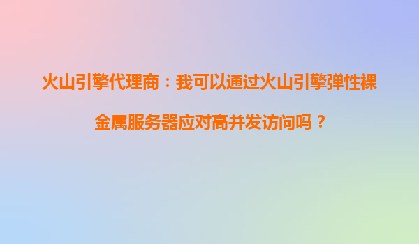 2025-10-10火山引擎代理商:火山引擎弹性裸金属服务器如何提升应用响应速度? 引言 在当今数字化时代,企业对应用性能的要求越来越高,尤其是响应速度直接影响用户体验和业务效率。火山引擎作为字...