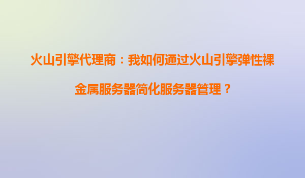 火山引擎代理商:火山引擎弹性裸金属服务器如何简化多节点管理? 引言:多节点管理的挑战与需求 在云计算和大数据时代,企业往往需要部署和管理大量服务器节点...