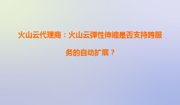 2025-10-04火山云代理商:火山云弹性伸缩是否支持跨服务的自动扩展? 引言 在云计算时代,弹性伸缩(AutoScaling)已成为企业优化资源利用、降低成本的关键技术。火山引...