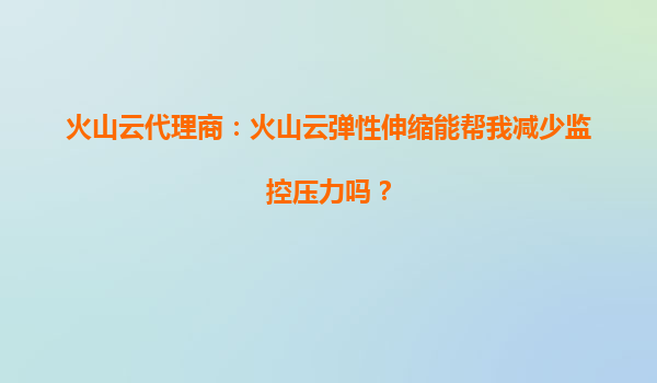 2025-10-05火山云代理商:火山云弹性伸缩如何有效降低企业监控压力? 一、企业运维监控的痛点与挑战 在数字化转型浪潮中,企业业务系统规模不断扩大,传统运维模式面临巨大压力: ...