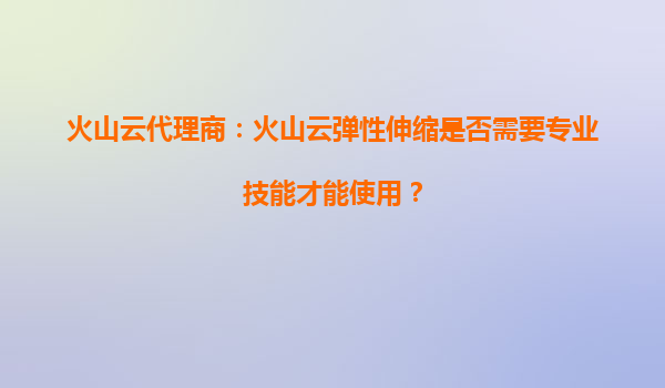 2025-10-05火山云代理商:火山云弹性伸缩是否需要专业技能才能使用? 一、火山云弹性伸缩的核心价值 火山云弹性伸缩(AutoScaling)是火山引擎提供的智能化资源管理服务,能够根据业务负载自动调...