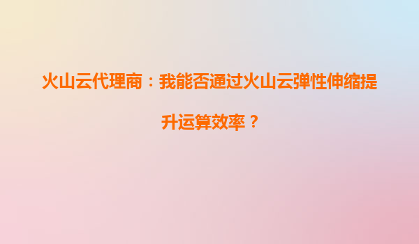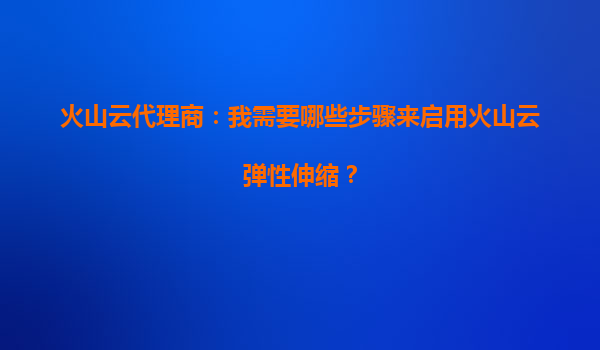 2025-10-03火山云代理商:启用火山云弹性伸缩的完整步骤指南 一、火山云弹性伸缩的核心优势 作为火山引擎的核心功能之一,弹性伸缩服务(AutoScaling)通过智能化的资源调度能力,帮助代理商和企业客户实现以下核心优势...