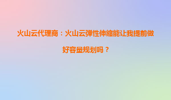 2025-10-03火山云代理商:火山云弹性伸缩能让我提前做好容量规划吗? 一、弹性伸缩与容量规划的核心关系 容量规划是企业IT资源管理的核心挑战之一,传统模式下需依赖人工预估峰值流量并预留冗余资源,成本高且灵活性...