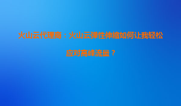 2025-10-03火山云代理商:火山云弹性伸缩是否适合突发型流量场景? 一、突发型流量场景的挑战 在数字化业务快速发展的今天,许多企业面临突发型流量场景的挑战,例如电商大促、在线教育高峰、游戏...