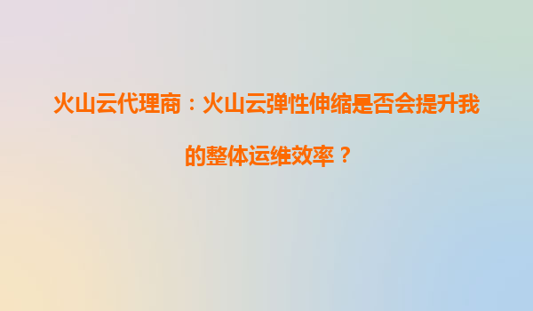 2025-10-03火山云代理商:我能通过火山云弹性伸缩获得实时的弹性保障吗? 一、弹性伸缩的核心价值 在数字化业务快速发展的今天,企业对IT资源的灵活性和稳定性需求日益增...