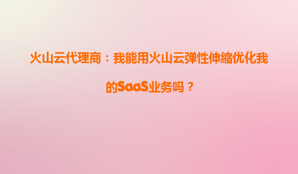 2025-10-03火山云代理商:我能用火山云弹性伸缩优化我的SaaS业务吗? 引言:SaaS业务面临的挑战 随着数字化转型的加速,SaaS(软件件即服务)业务已成为企业服务的主流模式。然而,SaaS业务在快速...