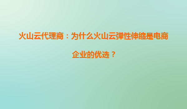 2025-10-02火山云代理商:为什么火山云弹性伸缩是电商企业的优选? 引言 在数字化时代,电商企业面临着流量波动大、业务需求变化快的挑战。如何高效应对这些挑战,成为企业提升竞争力的关键。火山...