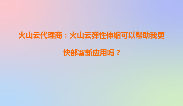 2025-10-02火山云代理商:火山云弹性伸缩如何加速新应用部署? 一、弹性伸缩的核心价值 在数字化转型浪潮中,企业需要快速响应市场变化,而应用的部署速度直接影响业务竞...